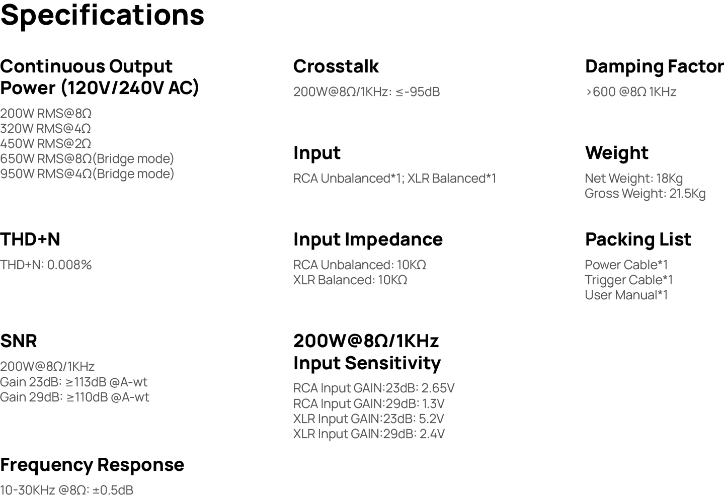Avec un facteur d'amortissement supérieur à 600, l'AMP-F10 garantit des basses puissantes et précises. Qu'il s'agisse de restituer l'impact intense des basses profondes ou de capturer les subtilités des basses fréquences, il excelle dans tous les domaines. De la puissance de la musique électronique aux murmures délicats du jazz, il s'adapte à une grande variété de styles d'écoute, insufflant à chaque note émotion et passion.