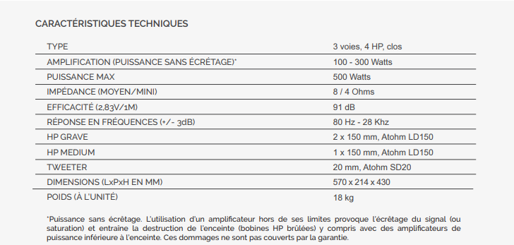 La LCR300, enceinte trois voies close utilise 3 HP LD150 ATOHM et un tweeter néodyme dôme soie étendant la réponse en fréquence jusqu’à près de 30 KHz. Cette architecture basée sur des composants exceptionnels vous offrira des moments d’écoutes inoubliables.